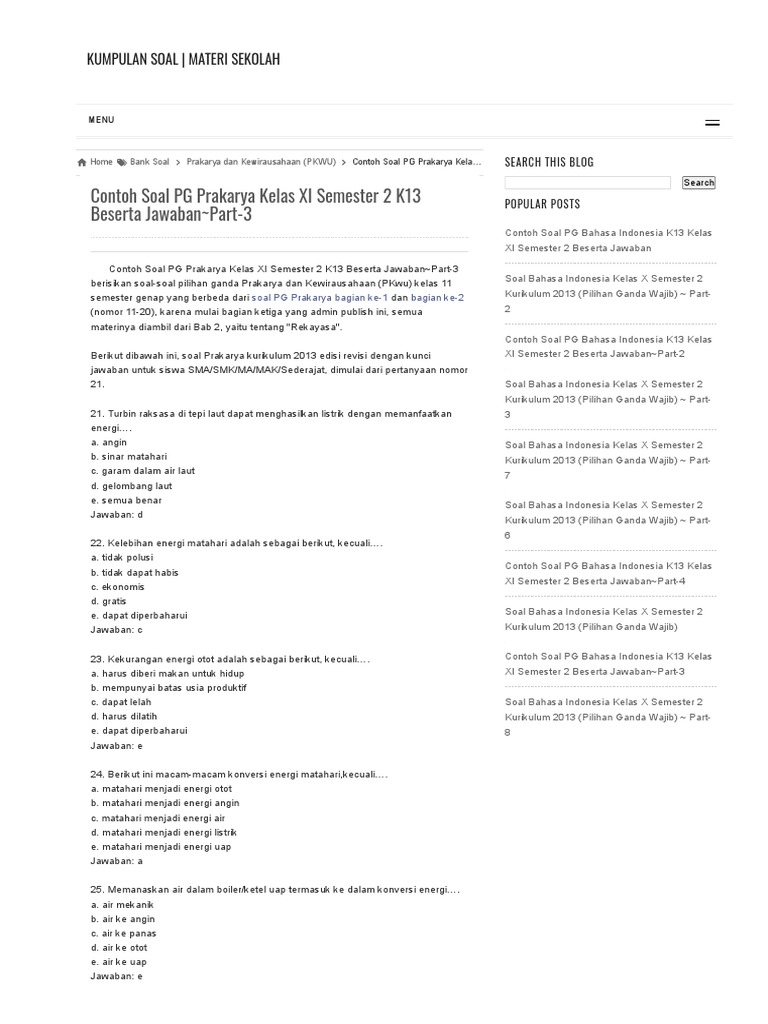 A short summary of this paper. Kumpulan soal dan jawaban prakarya kelas 11 semester 2. Contoh soal uaspat prakarya kwu kelas 11 semester genap kurikukulum 2013 dan jawaban by tekapeid berikut dibawah ini soal prakarya dan kunci jawabannya untuk kelas xi semester 2 kurtilas edisi revisi. A short summary of this paper. Buku paket kwu kelas 11 semester 2 guru ilmu sosial.